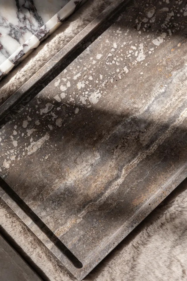 Lag luksuriøse, inspirerende og vakre stilleben med Phantom-brettet.»>Phantom-brettet er designet for å være et eksklusivt, tidløst men samtidig moderne dekorativt tillegg til interiørdesign, som kan brukes i alle husets rom. Hvert marmorbrett er formet over millioner av år av naturen, noe som gjør hvert brett helt unikt i farge og mønster. Specktrum har lett og lett for å finne farger og strukturer som de mener er helt unike – og som utstråler moderne eksklusivitet og tidløs luksus.