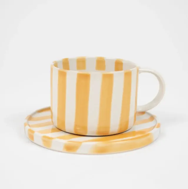 Monica er en håndmalt, frisk og glad kopp med tilhørende skål/fat.