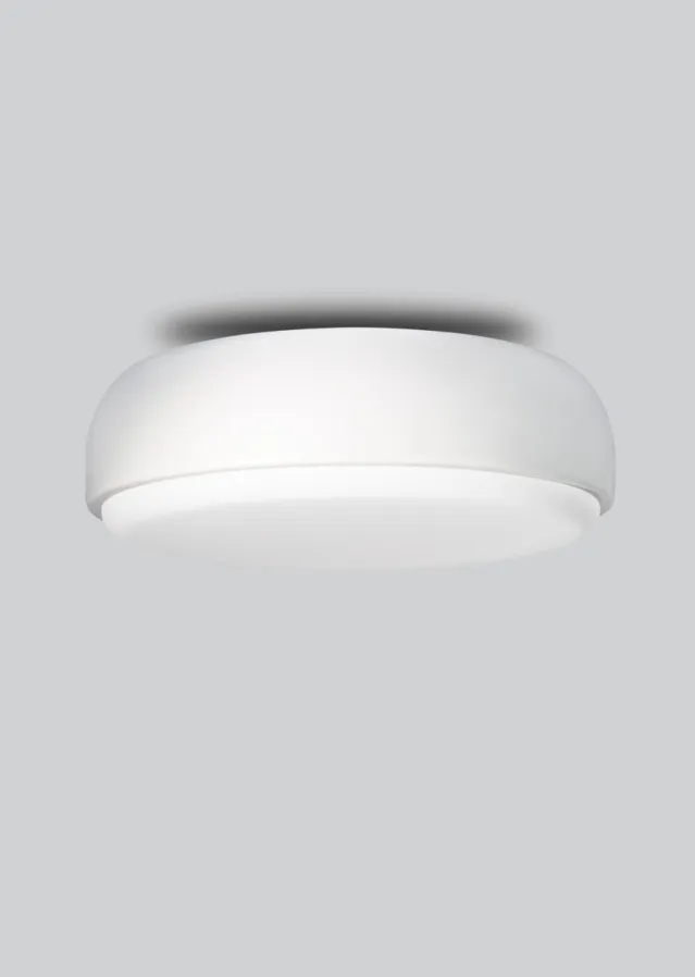 Over me plafond fra norske Northern Lighting er designet av Morten & Jonas. Lampen har et stilig design, med en metallramme og en blank front. Skjermen sprer et mykt og noe diffust lys, og kan enkelt plasseres i de aller fleste rom. Lampens subtile lys, gjør at den smelter fint inn om den blir plassert i taket, men legges merke til om den plasseres på veggen. Velg mellom hvit eller mørk grå.