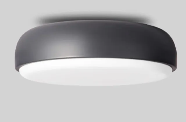 Over me plafond fra norske Northern Lighting er designet av Morten & Jonas. Lampen har et stilig design, med en metallramme og en blank front. Skjermen sprer et mykt og noe diffust lys, og kan enkelt plasseres i de aller fleste rom. Lampens subtile lys, gjør at den smelter fint inn om den blir plassert i taket, men legges merke til om den plasseres på veggen. Velg mellom hvit eller mørk grå.