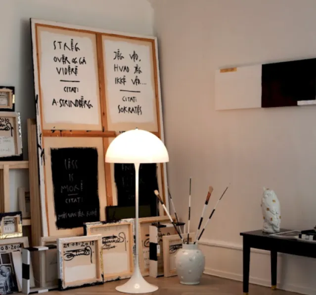 ”Verner Panton utviklet opprinnelig Panthella lampen i samarbeid med Louis Poulsen i 1971. Verner Panton ønsket opprinnelig at Panthella lampen skulle lanseres med metallskjerm, noe som teknologisk sett ikke kunne la seg gjøre i 1971. Derfor er der nå snakk om en verdenspremiere basert på Verner Pantons opprinnelige tegninger. De nye metallskjermene er hvite på innsiden og retter lyset nedover, fra hvor det reflekteres opp og ut i rommet fra trompetfoten.