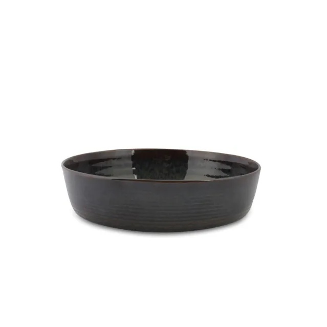 Dekk bordet ditt med dette vakre og rustikke serviset i stengods. Glasuren er mørkblå med nyanser av brunt på kantene.