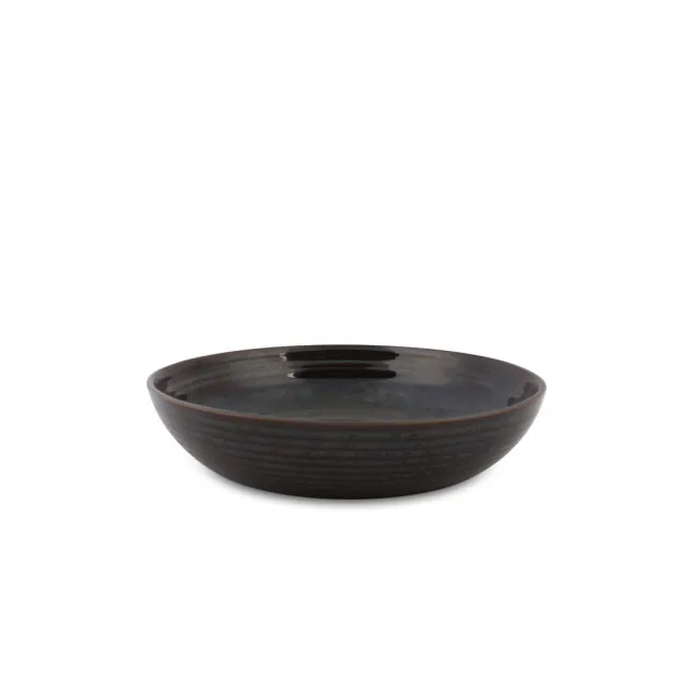 Dekk bordet ditt med dette vakre og rustikke serviset i stengods. Glasuren er mørkblå med nyanser av brunt på kantene.