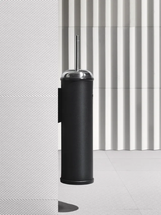 Den veggmonterte Vipp-toalettbørsten er en raffinert nødvendighet for baderommet. En silikonring på toppen gir lufttett lukking. Børstehodet og innerrøret til toalettbørsten kan erstattes.