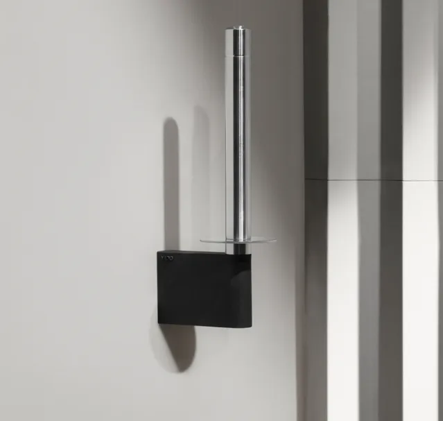 Vipp reserverullholder er en nyttig løsning for å oppbevare ekstra toalettruller på badet. Sammen med Vipps toalettrullholder kompletterer reserverullholderen et funksjonelt produktpar for baderommet.