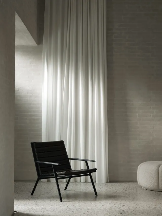 Vipp lenestol passer godt inn i en stue eller lesekrok. Den komfortable lenestolen har en pulverlakkert aluminiumsramme med polstrede armlener og et svakt vinklet sete og ryggstøtte. Den har avrundede kanter og møbeltrekk i glatt, mørkebrunt lær som tilfører en mykhet til den robuste og presstøpte konstruksjonen. Møbeltrekket i mørkebrunt skinn har unike visuelle særtrekk !