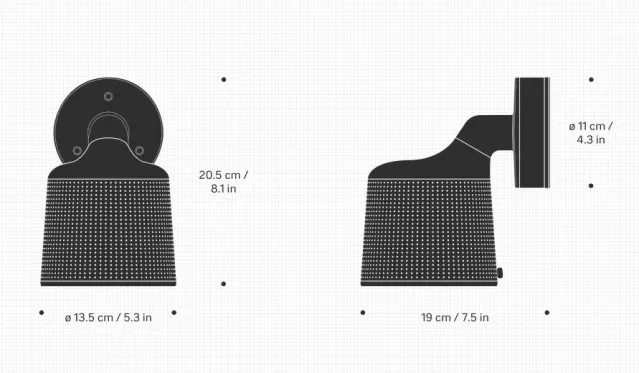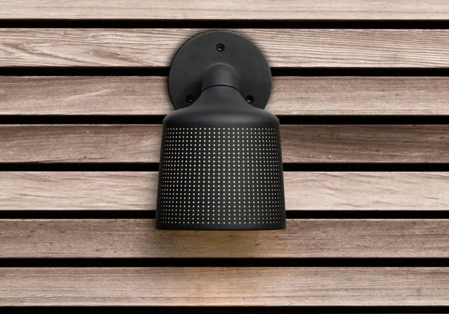 Vipp utendørs veggspot er en allsidig vegglampe som egner seg utmerket for utendørsfasader. Denne lampen er laget av pulverbelagt aluminium og rustfritt stål med matt glass og en perforert skjerm som gir en behagelig spredning av lyset. Egner seg også for bruk innendørs.