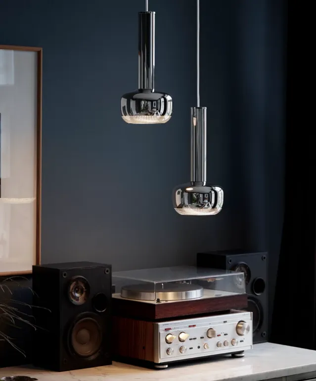 Taklampen avgir nedadrettet blendingsfritt lys. Det radiale perforeringsmønsteret rundt åpningen skaper en mykere overgang mellom lys og mørke. Perforeringen skaper et mykt, vakkert lysmønster både på skjermen og på de omkringliggende overflatene.