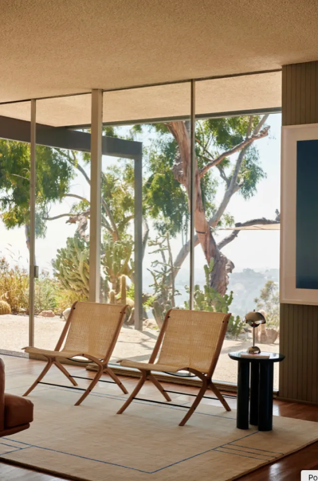Naturlig rotting vevd rundt en pulverlakkert ramme i rustfritt stål.
