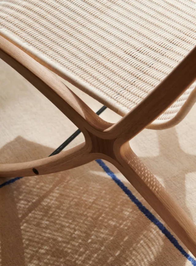 Produktmateriale Eik m. valnøttinnsats og sete i naturrotting